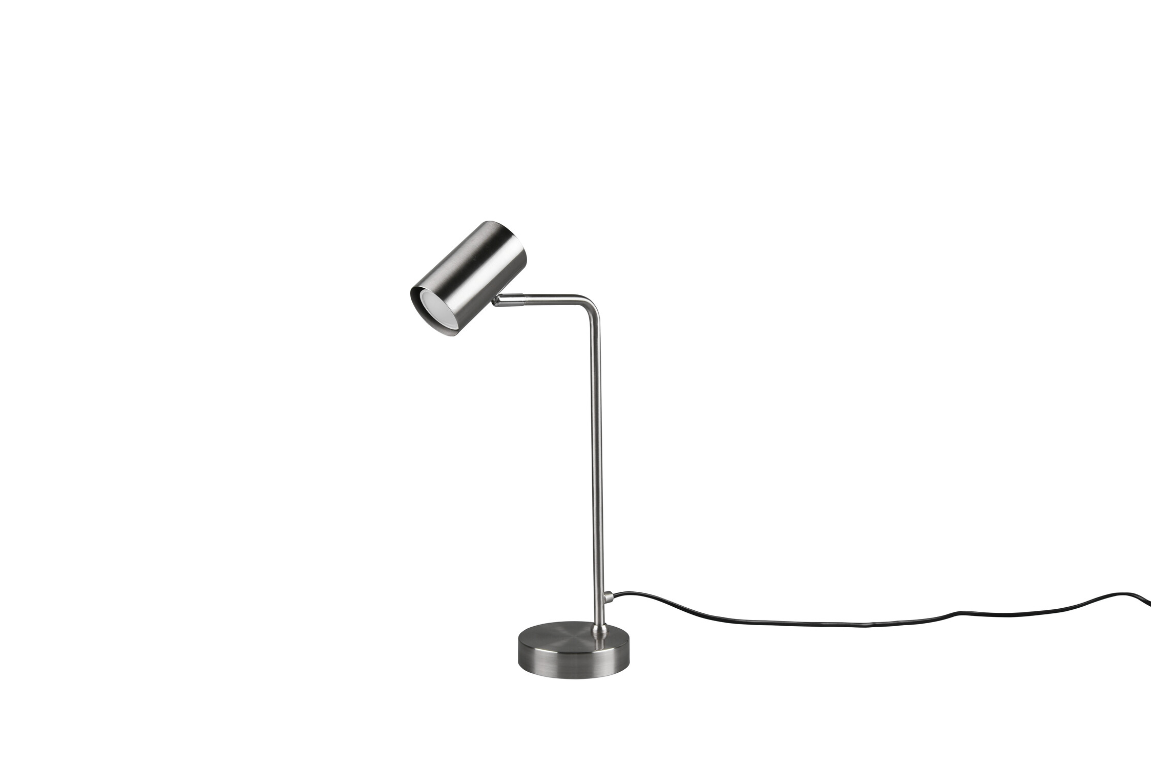 La lampe de table personnalisable en Nickel Mat La lampe de table MARLEY (512400107) en Nickel Mat est idéale pour un chevet ou un bureau. Sa tête est orientable pour cibler la lumière.. Elle nécessite une ampoule GU10 remplaçable (non fournie, max 10W). L'interrupteur ON/OFF est situé sur le cordon pour un usage facile.