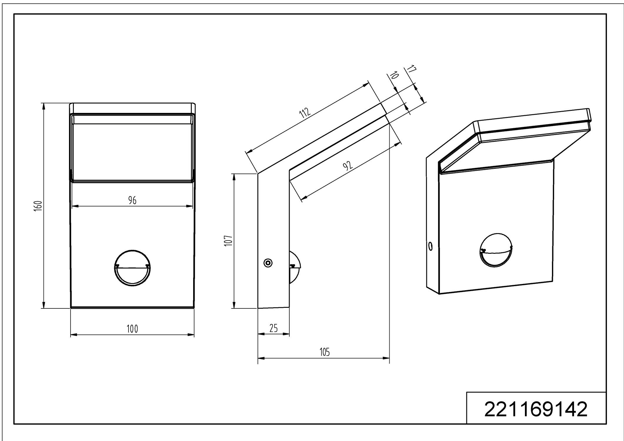 3.000°K (Chaud) 2700=chaud • 3000=chaud neutre • 4000=neutre • 6000=froid | | Variation | Non Compatible | | Alimentation / Normes | 220V/Cl1/IP54 | | Dimensions | 100* 160* 105 mm | | Matière(s) Principale(s) | Fonte aluminium | | Couleur/Finition | Anthracite | | Position / Fixation | A fixer au mur | | Utilisation | En Extérieur | | Accessoire(s) | Détecteur de mouvement intégré | | Garantie | 2+3 ans