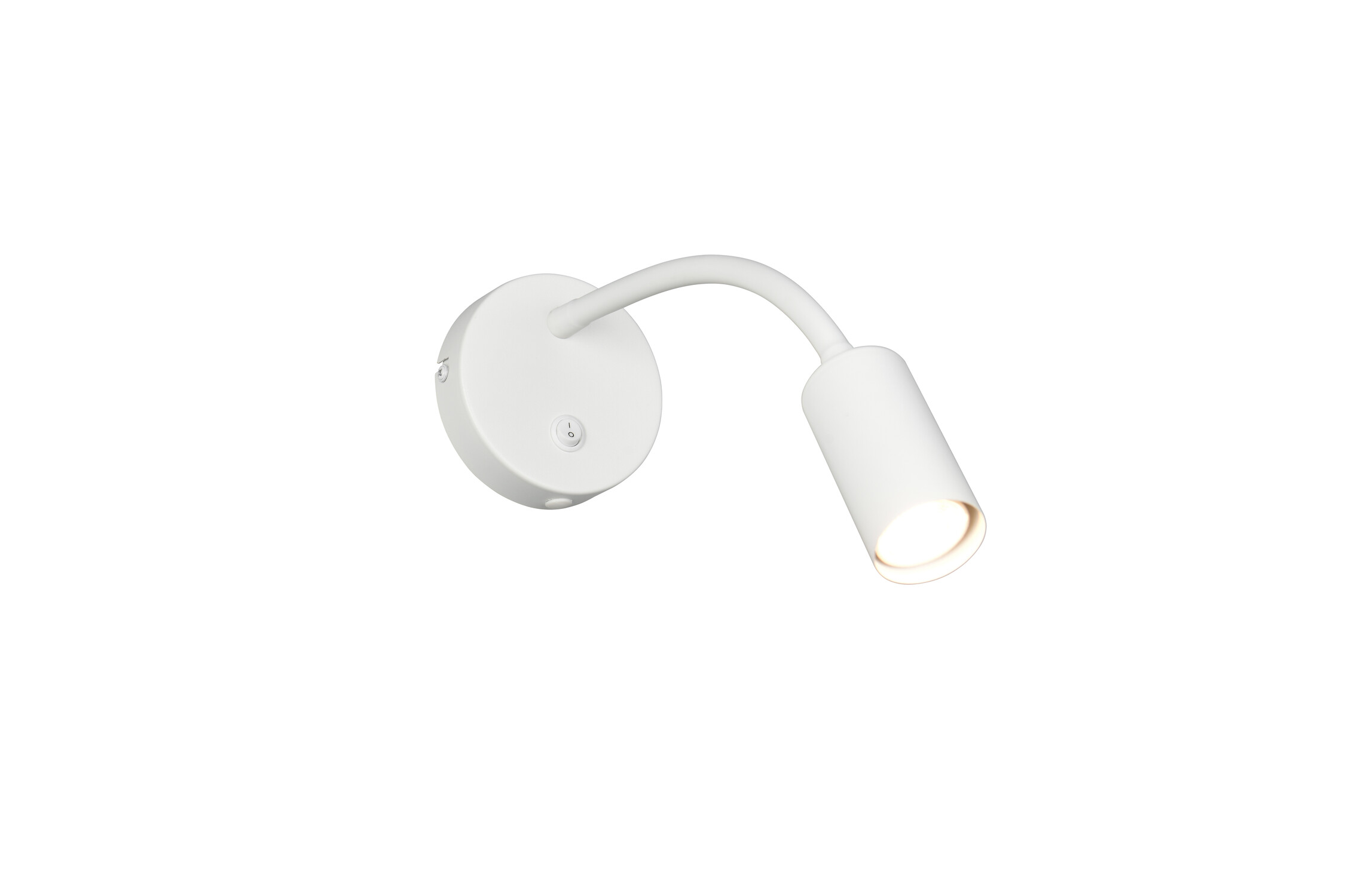 TARYN : Applique Liseuse Orientable - Blanc Mat Cette applique murale TARYN, au design minimaliste et slim, est la liseuse parfaite pour une chambre ou un bureau. Sa finition blanc mat s'intègre discrètement dans tous les intérieurs. La lumière est dirigée par un bras flexible en silicone (environ 30 cm) qui permet un réglage précis de l'angle d'éclairage. Elle est FLEXconnect ready, offrant une grande polyvalence d'installation (raccordement fixe ou câble d'alimentation optionnel).. Le luminaire R26851731 est équipé d'un interrupteur marche/arrêt sur sa base pour un contrôle direct. Il utilise une ampoule GU10 (max 5W), procurant une lumière vive et ciblée. Son style épuré et sa fonctionnalité en font un essentiel du luminaire moderne. | Type d'ampoule | Spot Gu10 (non inclus(e)) | | Puissance | max 5W | | Variation | Non Compatible | | Alimentation / Normes | 220V/Cl1 | | Dimensions | 100* max 355 mm | | Matière(s) Principale(s) | Métal | | Couleur/Finition | Blanc mat | | Position / Fixation | A fixer au mur | | Utilisation | En intérieur | | Accessoire(s) | | | Garantie | 2 ans |