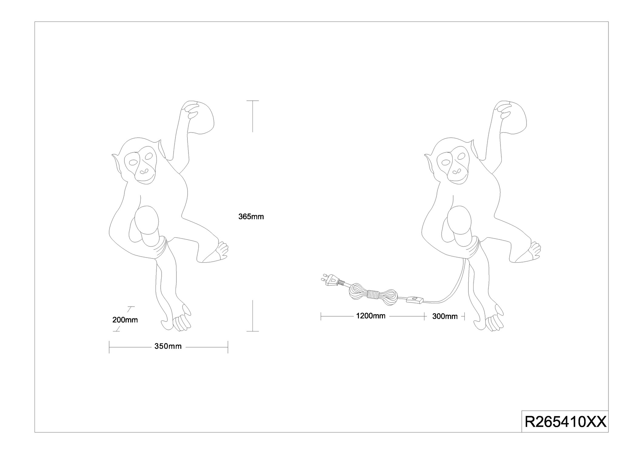 Conçu en plastique noir sculpté, le singe s’accroche directement au mur, donnant l’impression d’escalader votre intérieur. Ce design original et ludique transforme un simple point lumineux en véritable objet décoratif.