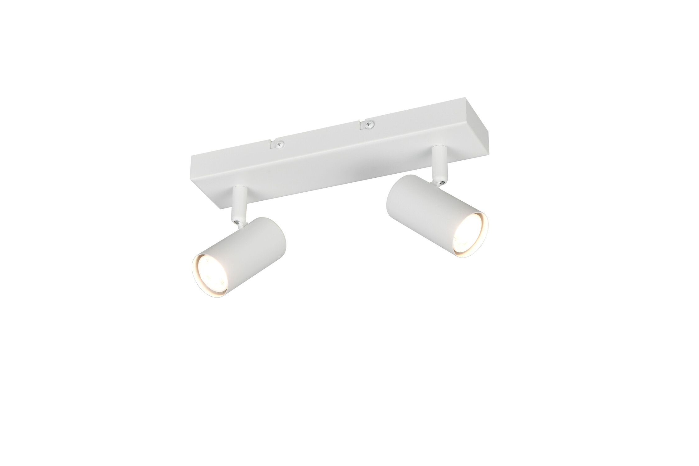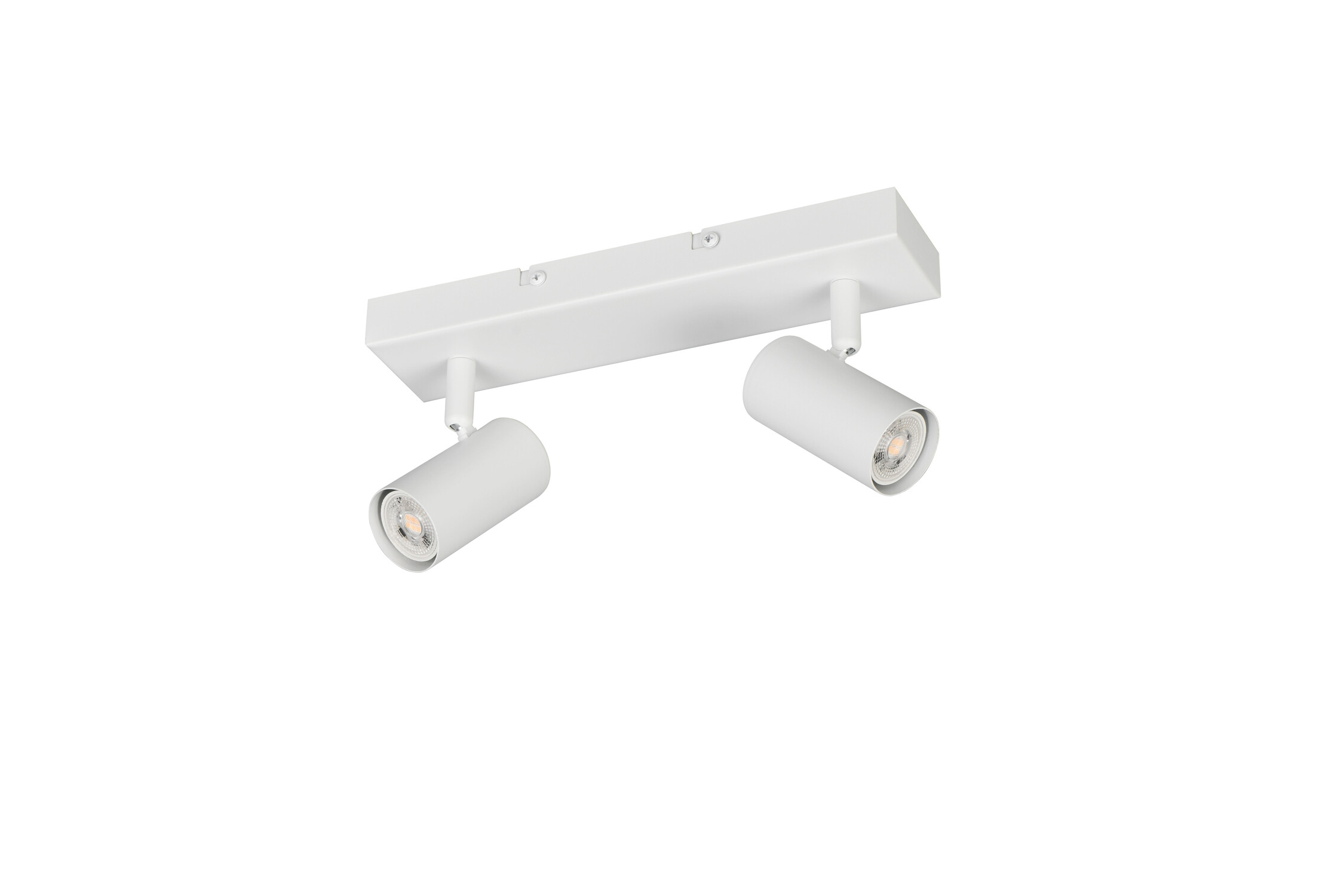 TARYN : Plafonnier Barre 2 Spots Orientables - Blanc Mat Cette barre de 2 spots TARYN (R86852031) offre un éclairage directionnel efficace pour les couloirs, les entrées ou les petits bureaux. Sa structure en métal blanc mat est sobre et s'intègre facilement. Les deux têtes de spot sont orientables indépendamment, ce qui permet d'ajuster l'angle lumineux selon les besoins.. Elle est conçue pour une installation fixe au mur ou au plafond. Elle utilise des ampoules GU10 (max 5W par spot). Le design cylindrique épuré est caractéristique de la gamme TARYN, offrant fonctionnalité et esthétique moderne.