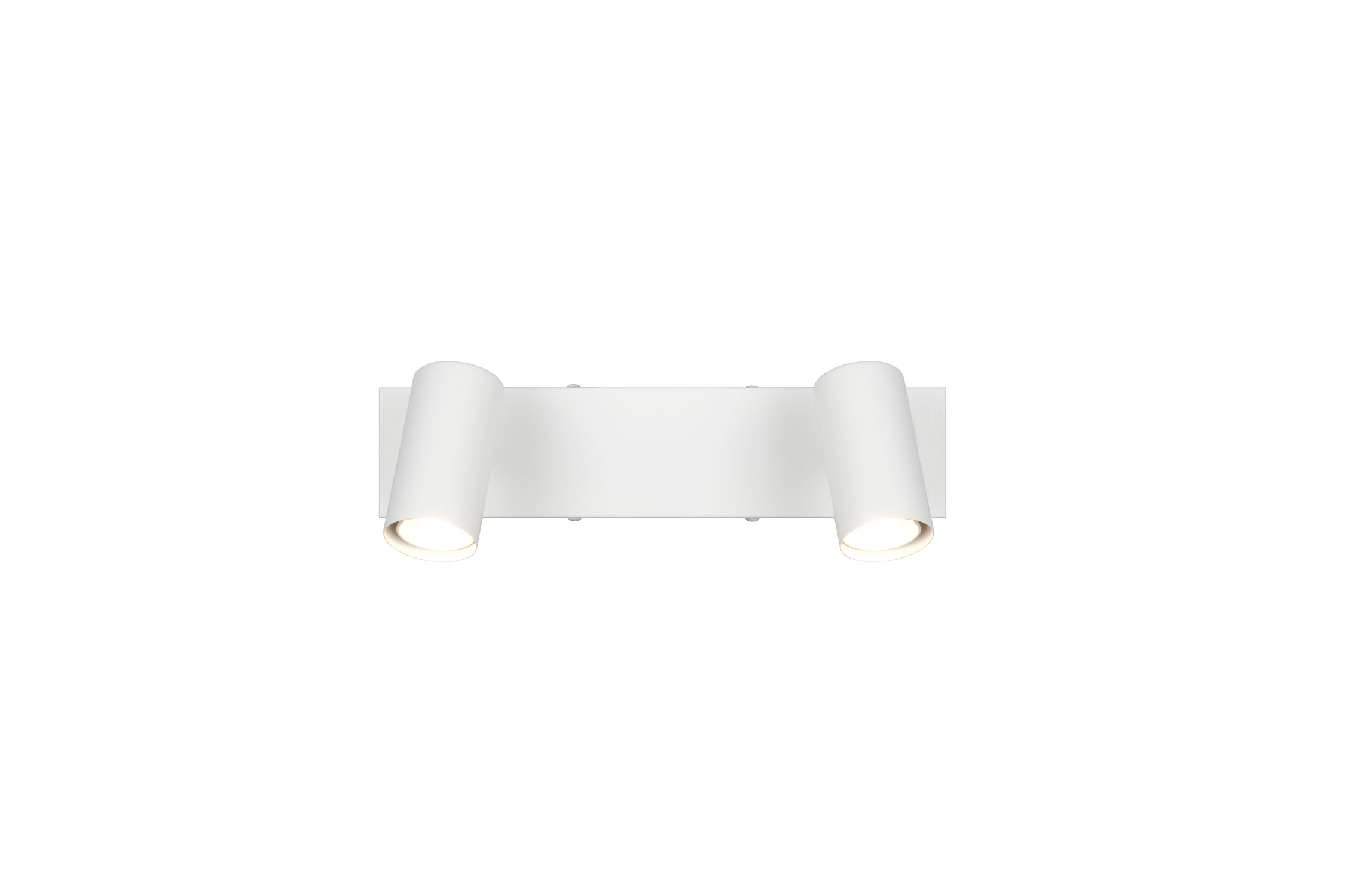 TARYN : La collection TARYN offre un design minimaliste et une fonctionnalité maximale. Elle se décline en Blanc mat, Noir mat et Gris mat/Café. | Type d'ampoule | Spot Gu10 (non inclus(e)) | | Puissance | max 2*5W | | Variation | Compatible | | Alimentation / Normes | 220V/Cl1 | | Dimensions | 60* 135* 310 mm | | Matière(s) Principale(s) | Métal | | Couleur/Finition | Blanc mat | | Position / Fixation | A fixer au mur ou plafond | | Utilisation | En intérieur | | Accessoire(s) | | | Garantie | 2 ans |