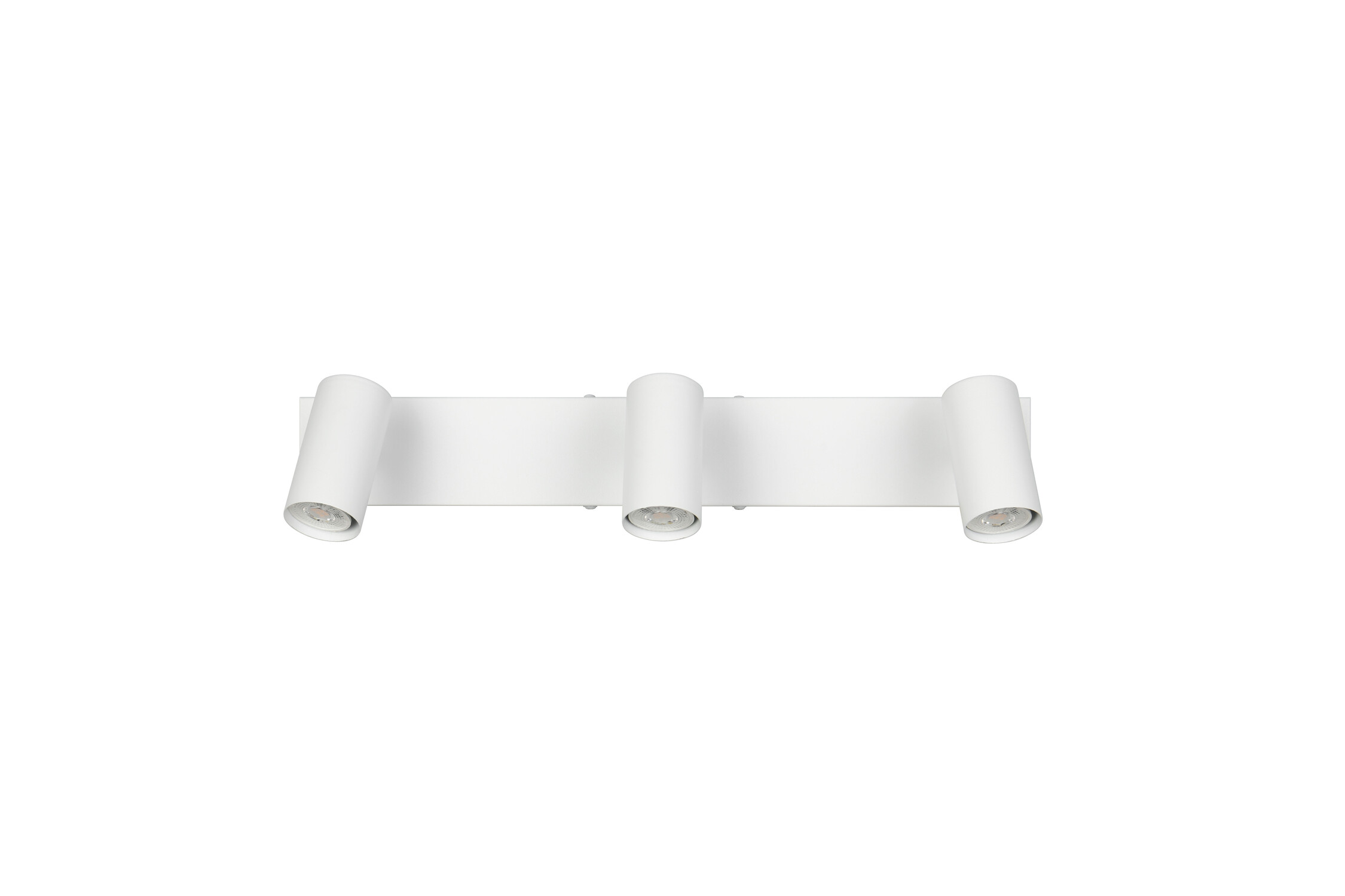 TARYN : La collection TARYN offre un design minimaliste et une fonctionnalité maximale. Elle se décline en Blanc mat, Noir mat et Gris mat/Café. | Type d'ampoule | Spot Gu10 (non inclus(e)) | | Puissance | max 3*5W | | Variation | Compatible | | Alimentation / Normes | 220V/Cl1 | | Dimensions | 60* 135* 445 mm | | Matière(s) Principale(s) | Métal | | Couleur/Finition | Blanc mat | | Position / Fixation | A fixer au mur ou plafond | | Utilisation | En intérieur | | Accessoire(s) | | | Garantie | 2 ans |