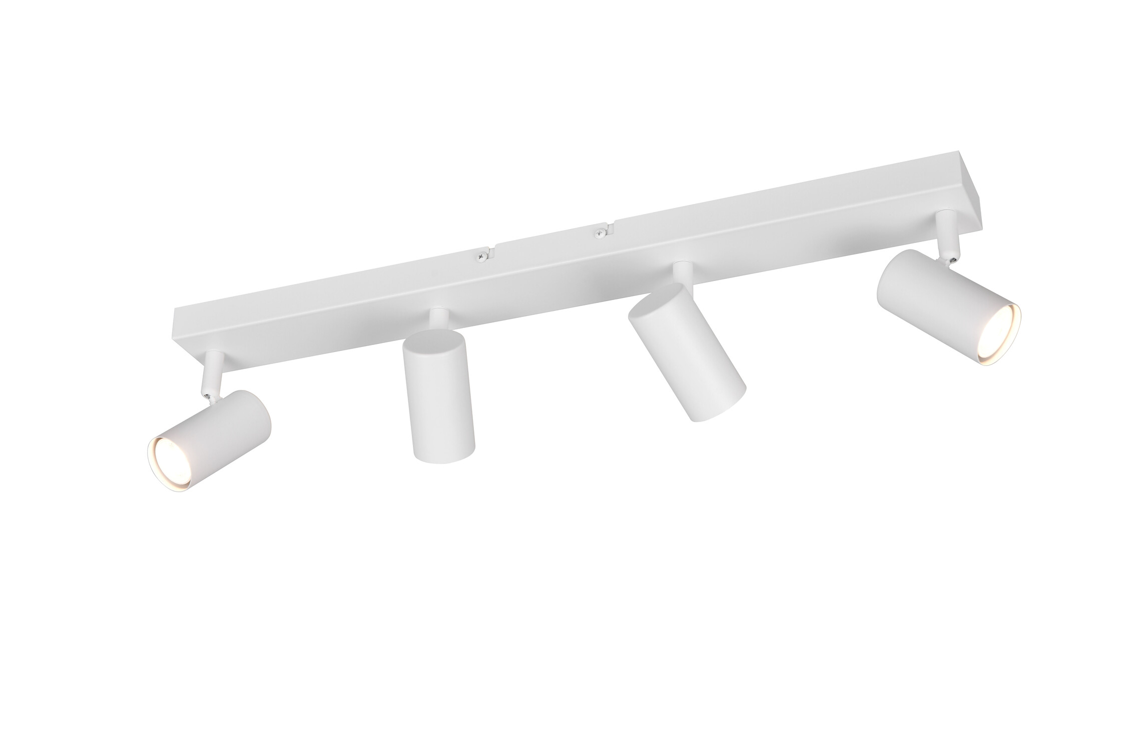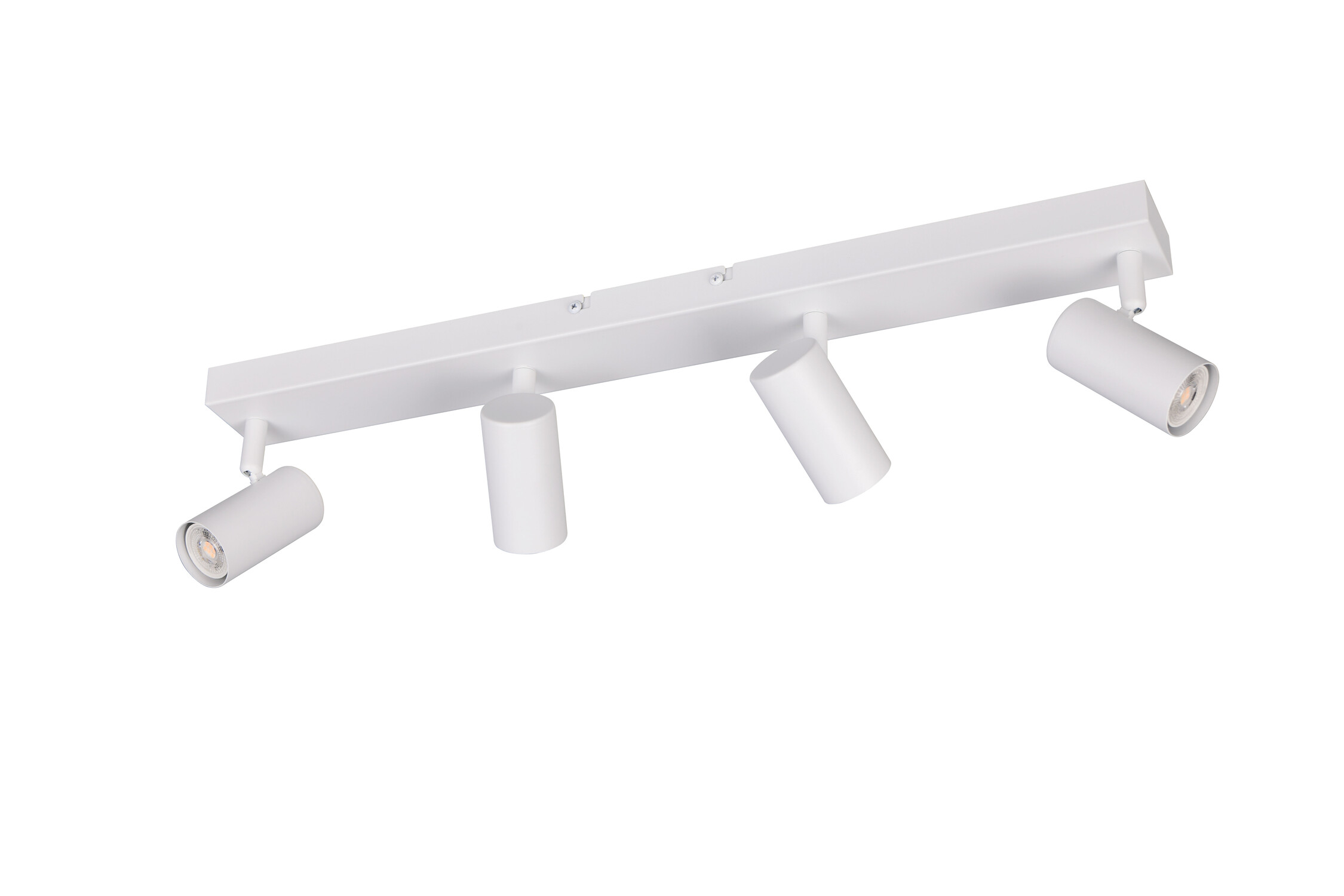 Questions Fréquentes▶ La barre de spots est-elle orientable ?Oui, les quatre têtes de spot sont réglables individuellement. ▶ Comment est l'installation de ce plafonnier ?Ce modèle est conçu pour une installation fixe au plafond ou au mur. ▶ Quelle est la longueur de cette barre ?Ce modèle est le plus long de la série, sa longueur est optimale pour bien répartir les 4 lumières dans une grande pièce. ▶ Quel type d'ampoule est nécessaire ?Quatre ampoules GU10 sont nécessaires (max. 5W par ampoule, non incluses). ▶ Ce luminaire convient-il pour un montage mural ?Oui, il convient pour un montage au plafond et/ou au mur. |