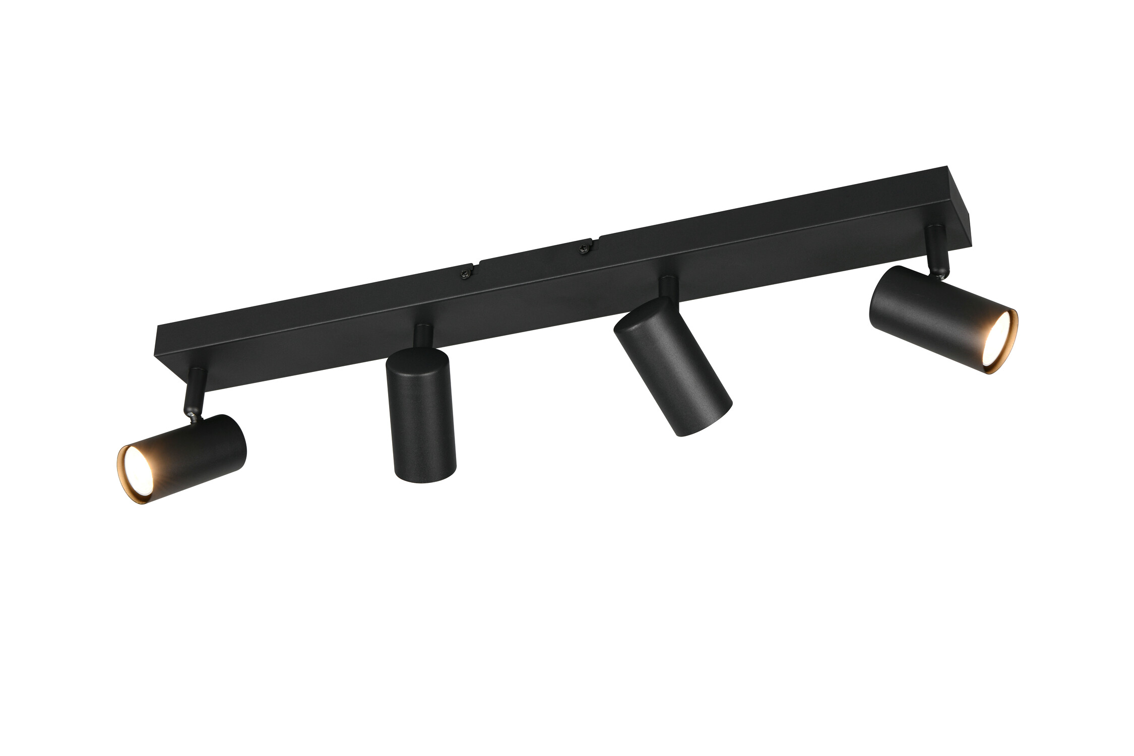 TARYN : Plafonnier Barre 4 Spots Orientables - Noir Mat Cette barre de 4 spots TARYN (R86854032) en noir mat est un luminaire de caractère, parfait pour un éclairage principal efficace dans un grand espace. Son design noir mat accentue le style moderne ou industriel. Les quatre têtes de spot sont orientables individuellement, assurant une couverture lumineuse complète et modulable.. Le modèle s'installe facilement au plafond ou au mur. Il utilise des ampoules GU10 (max 5W par spot). C'est la solution optimale pour éclairer un long comptoir de cuisine, une table de salle à manger ou un grand salon.