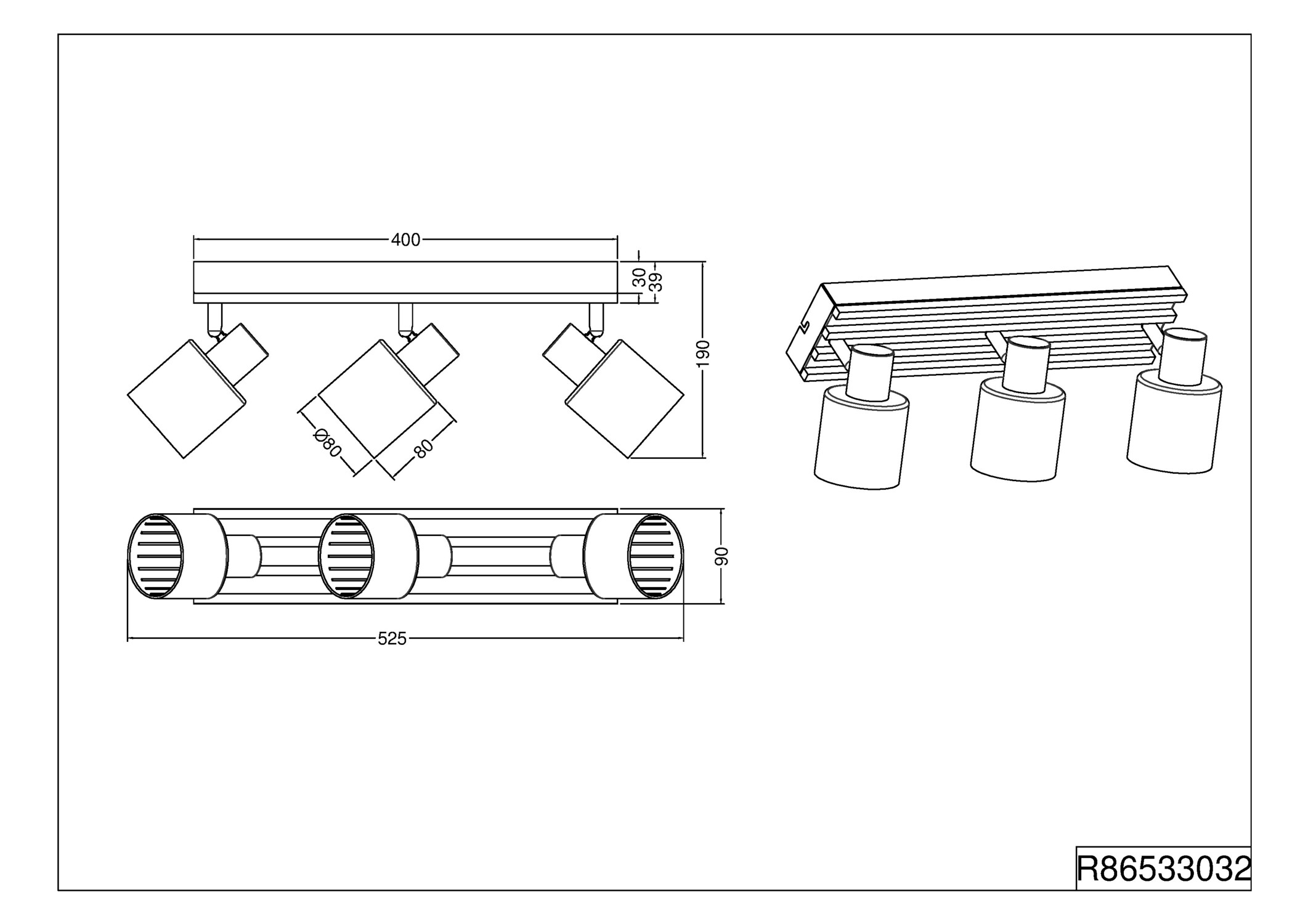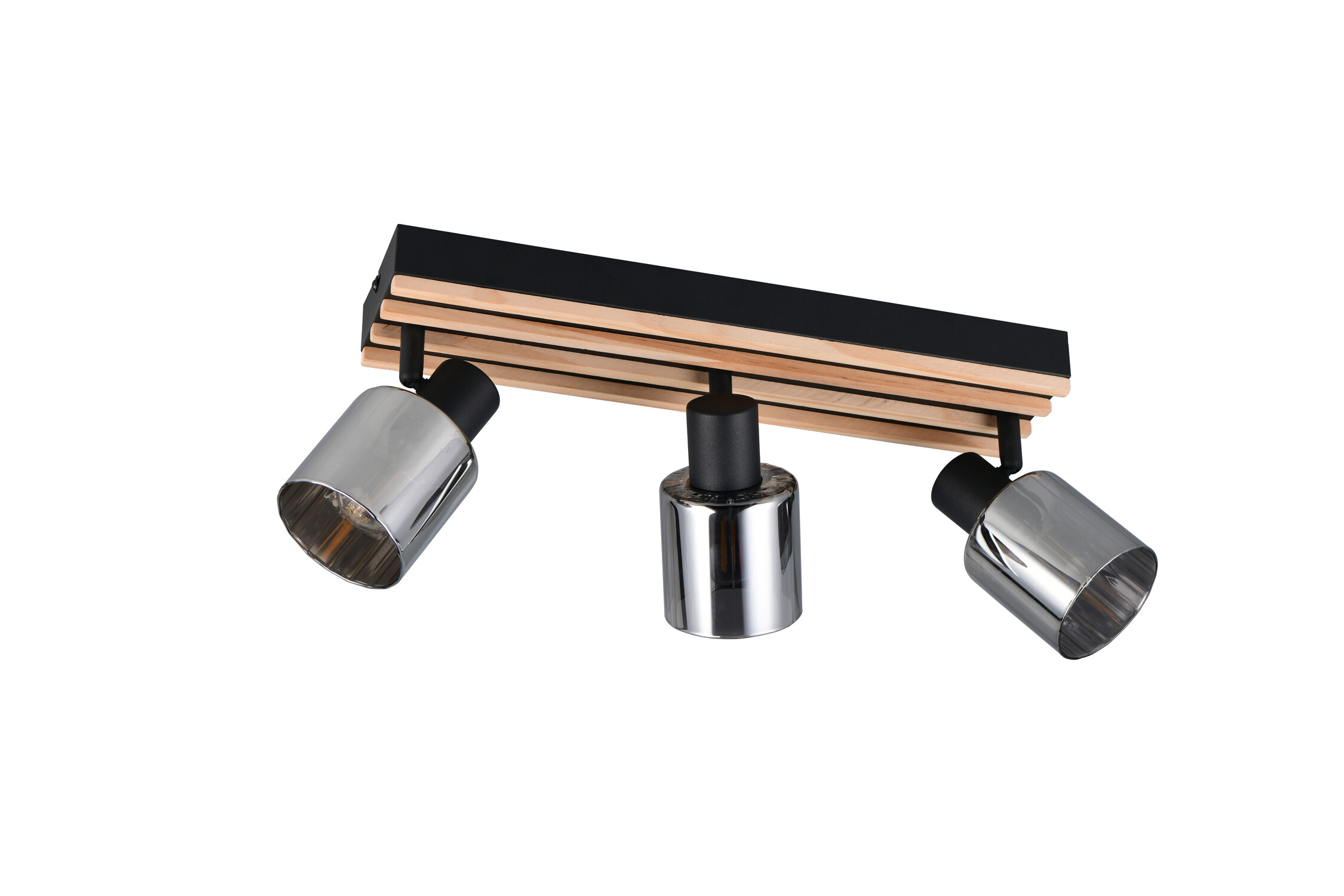 TRAVIA : Barre 3 Spots Bois/Noir Mat - L'Élégance Déco Optez pour la barre de spots TRAVIA 3 Lumières R86533032 pour un éclairage général efficace et au goût du jour. La structure allongée est rehaussée par des tiges de bois clair qui s'intègrent au support noir mat, soulignant l'aspect naturel et contemporain du luminaire. Ce modèle est parfait pour être installé au-dessus d'un plan de travail ou dans un salon.. Les trois têtes de spot peuvent être orientées individuellement, ce qui est essentiel pour un éclairage modulable. Cette flexibilité vous permet de diriger la lumière vers plusieurs zones clés de la pièce. Le contraste entre les matériaux (bois scandinave et métal industriel) en fait une solution d'éclairage polyvalente qui rehausse immédiatement le style de votre intérieur. Fonctionne avec des ampoules E14.