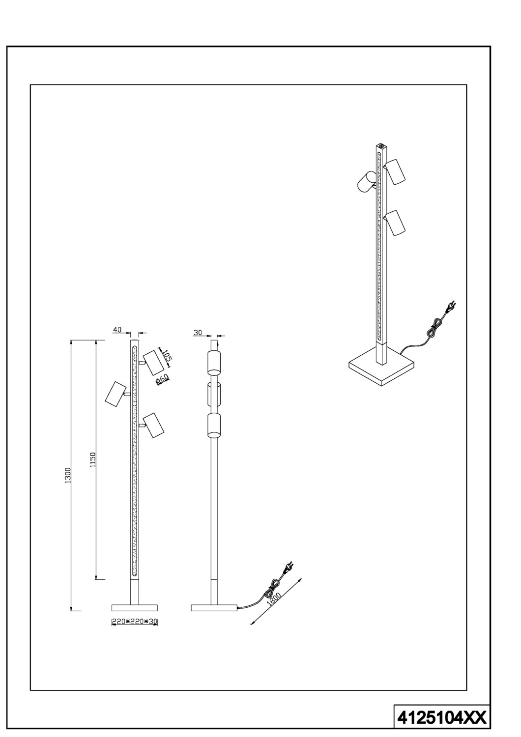 Lampadaires MARLEY GU10/LED, design minimaliste et orientable. | Type d'ampoule | Spot Gu10 (partiellement) | | Puissance | 20W+max.3*10W 2300Lm