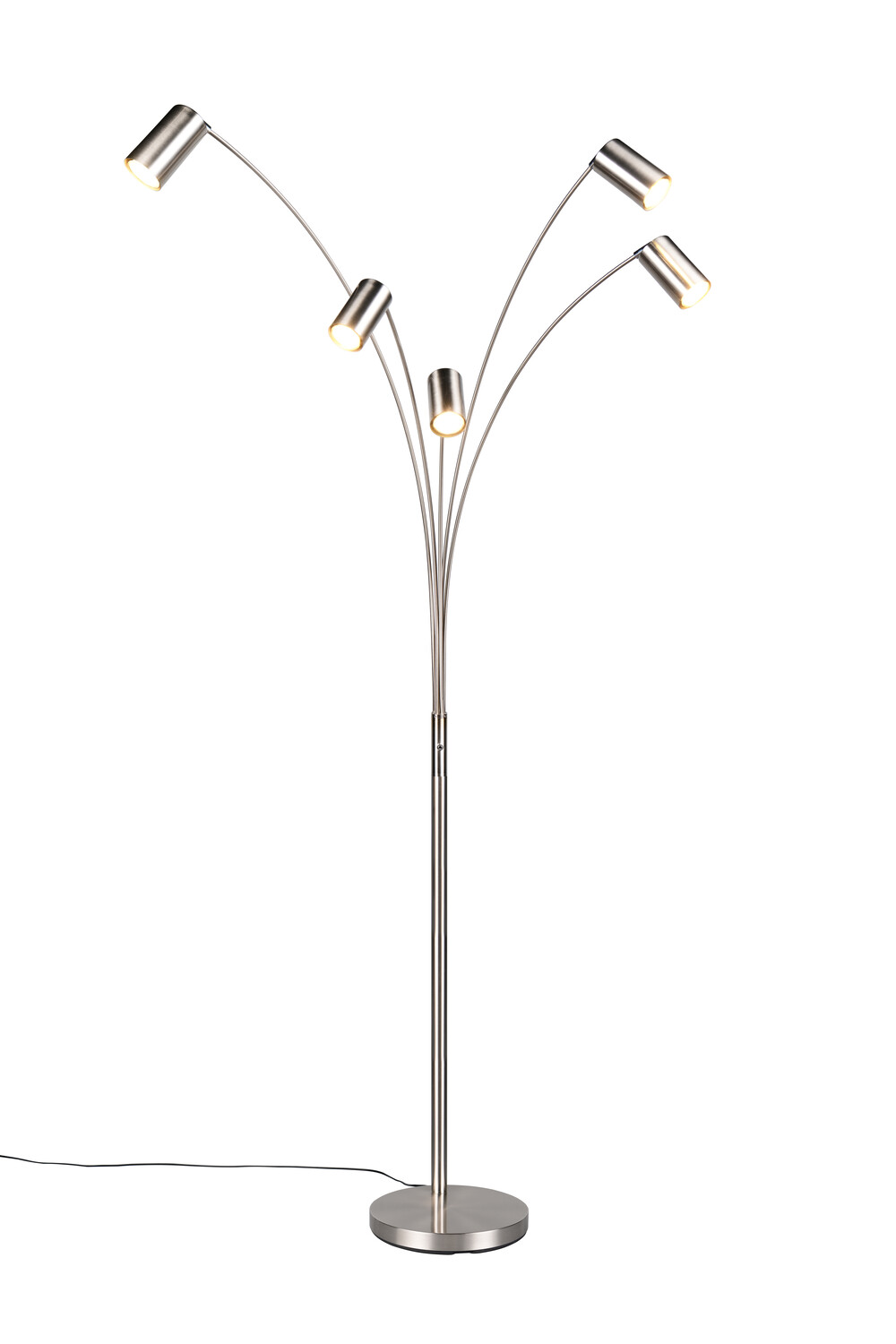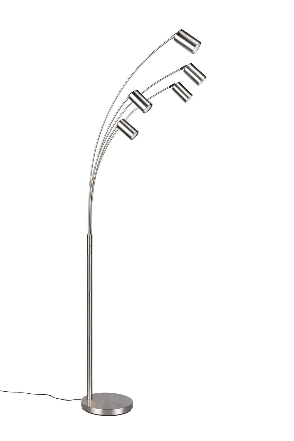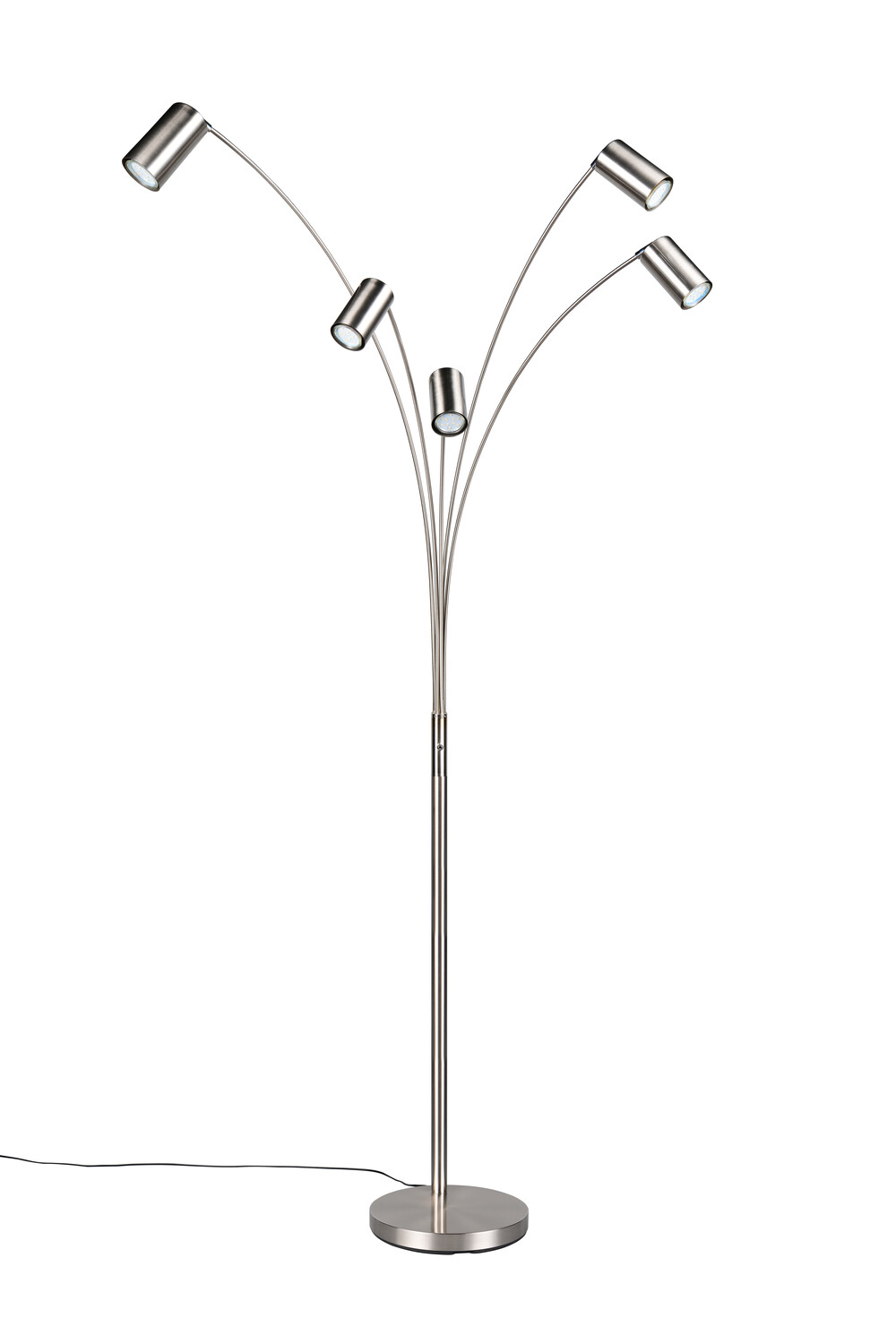 Lampadaires MARLEY GU10 remplaçables, design minimaliste et orientable. | Type d'ampoule | Spot Gu10 (non inclus(e)) | | Puissance | max.5*10W | | Variation | Non Compatible | | Alimentation / Normes | 220V/Cl2 | | Dimensions | 550* 800* 2000 mm | | Matière(s) Principale(s) | Métal | | Couleur/Finition | Nickel mat | | Position / Fixation | A poser | | Utilisation | En intérieur | | Accessoire(s) | | | Garantie | 2 ans |