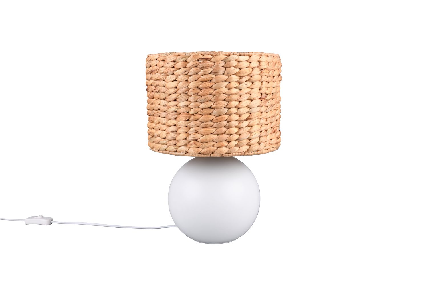 Le pied en céramique blanche mate apporte une touche de modernité épurée et contraste élégamment avec les fibres naturelles.