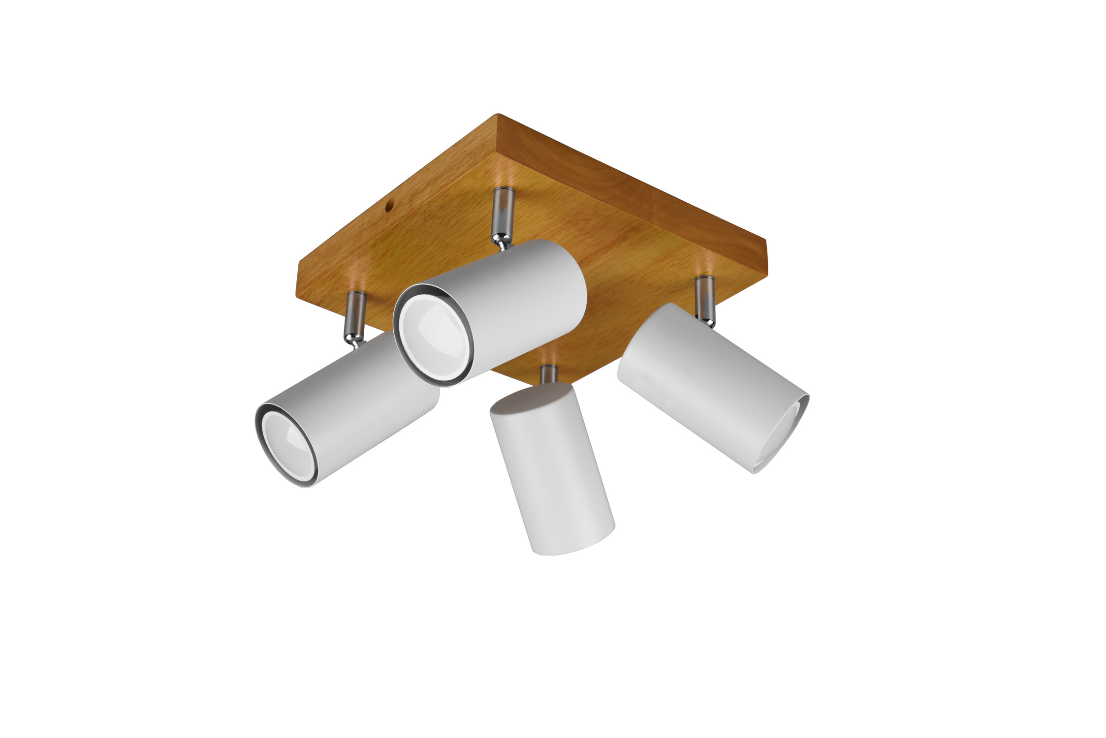 Plafonnier carré 4 spots polyvalents en Blanc Mat et Bois (40W Max) Une lumière parfaite et orientable ! Les projecteurs MARLEY ne sont pas seulement pratiques par leur forme et leur fonction, mais surtout par leur aspect minimaliste ! Le support en bois ajoute une chaleur bienvenue.. Les quatre spots sont orientables individuellement et peuvent être dirigés selon les besoins. Elle nécessite quatre ampoules GU10 remplaçables (non fournies, max 10W chacune).