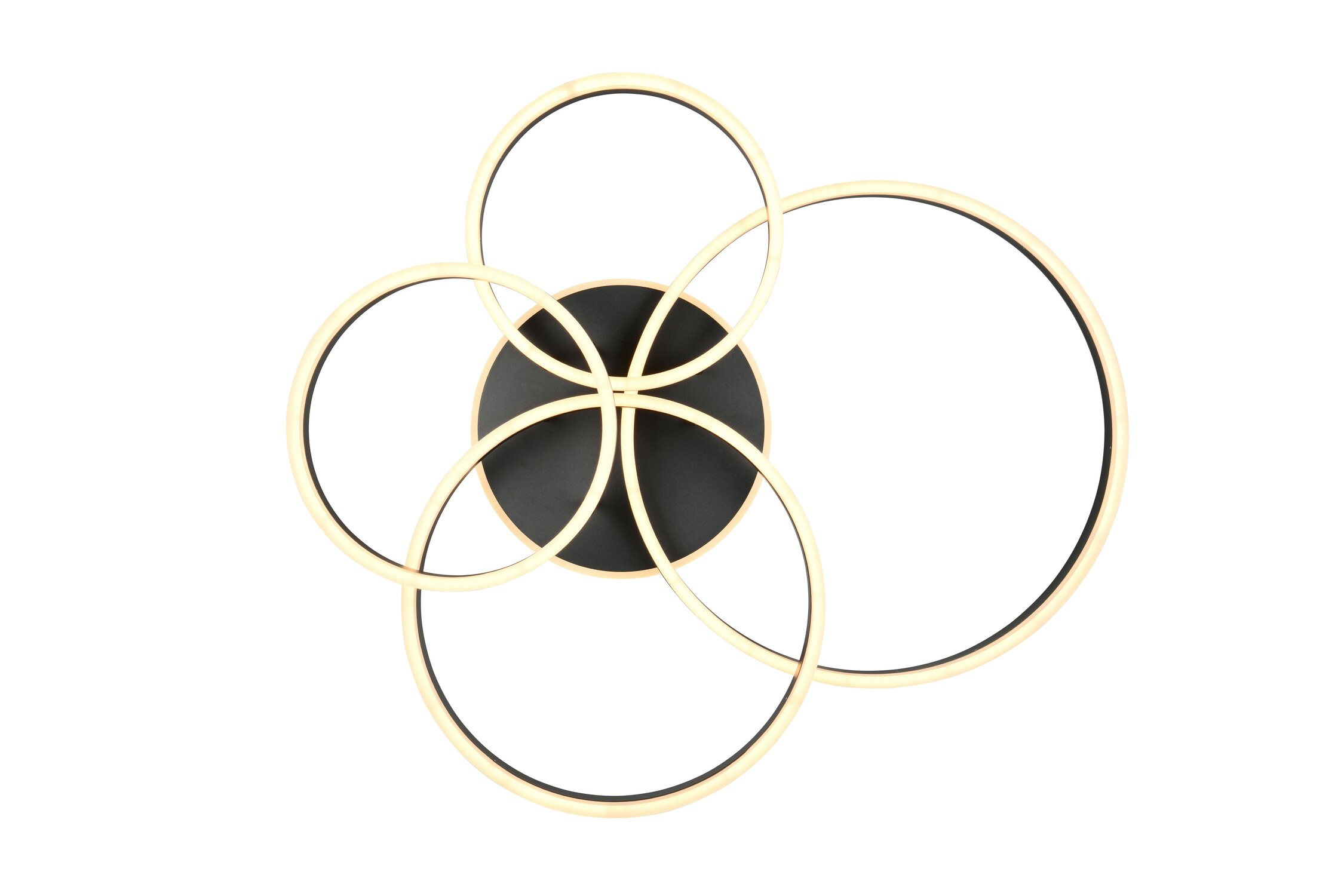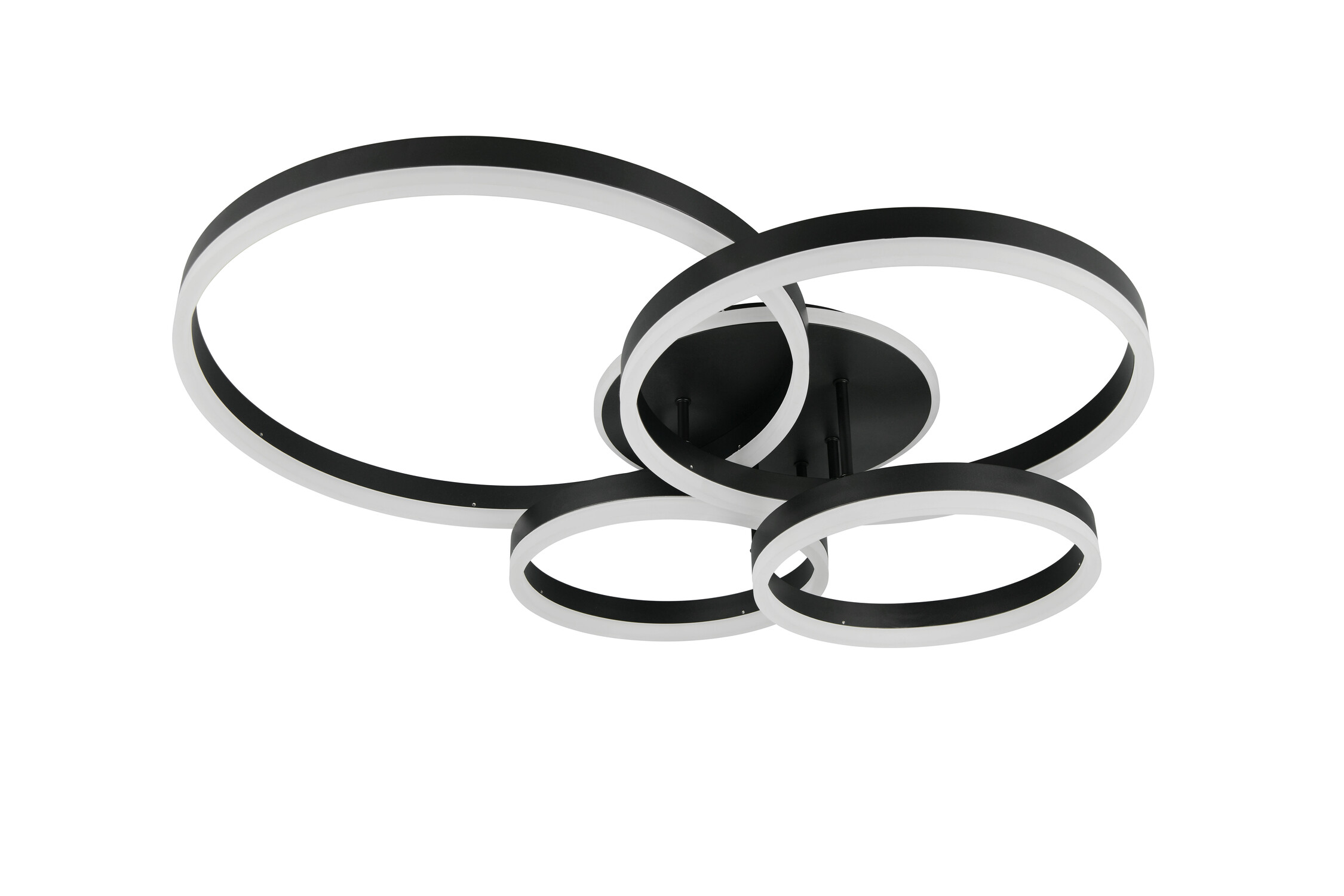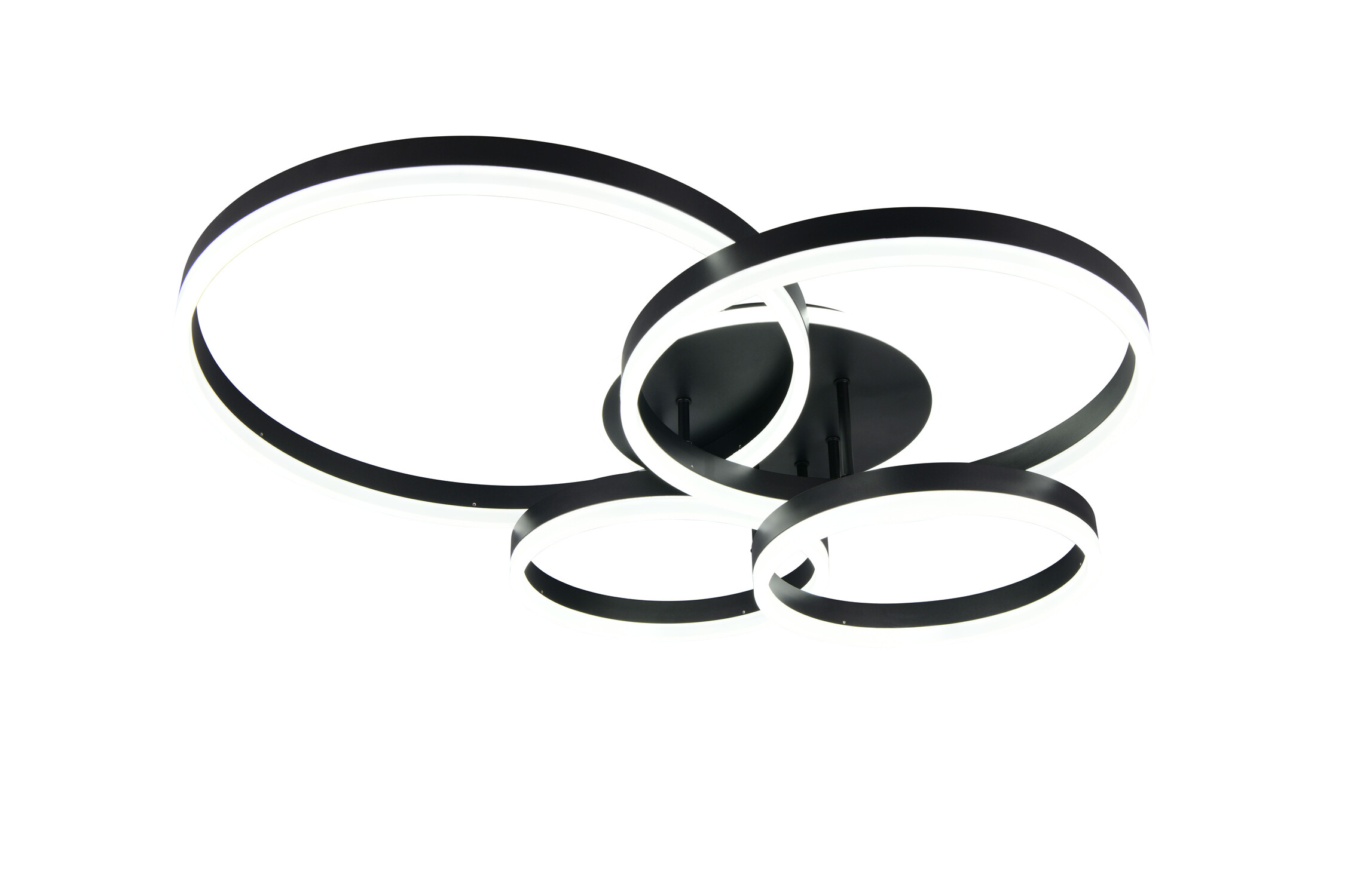 Le plafonnier TRIO DRAKE se distingue par sa composition en 4 cercles lumineux au design graphique, fini Noir mat, pour une mise en scène moderne du plafond.