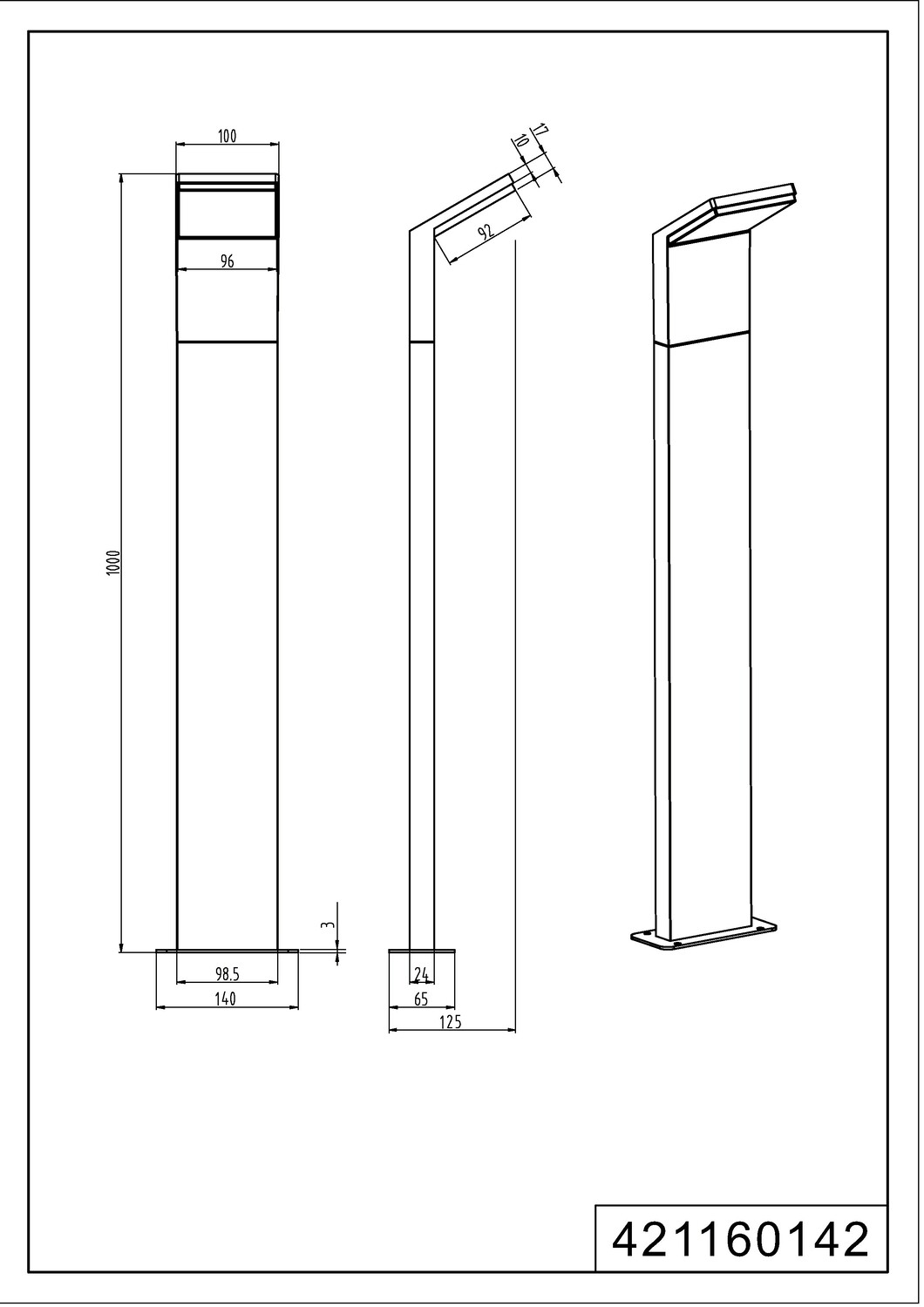 3.000°K (Chaud) 2700=chaud • 3000=chaud neutre • 4000=neutre • 6000=froid | | Variation | Non Compatible | | Alimentation / Normes | 220V/Cl1/IP54 | | Dimensions | 100* 1000* 125 mm | | Matière(s) Principale(s) | Fonte aluminium | | Couleur/Finition | Anthracite | | Position / Fixation | A fixer au sol | | Utilisation | En Extérieur | | Accessoire(s) | | | Garantie | 2+3 ans