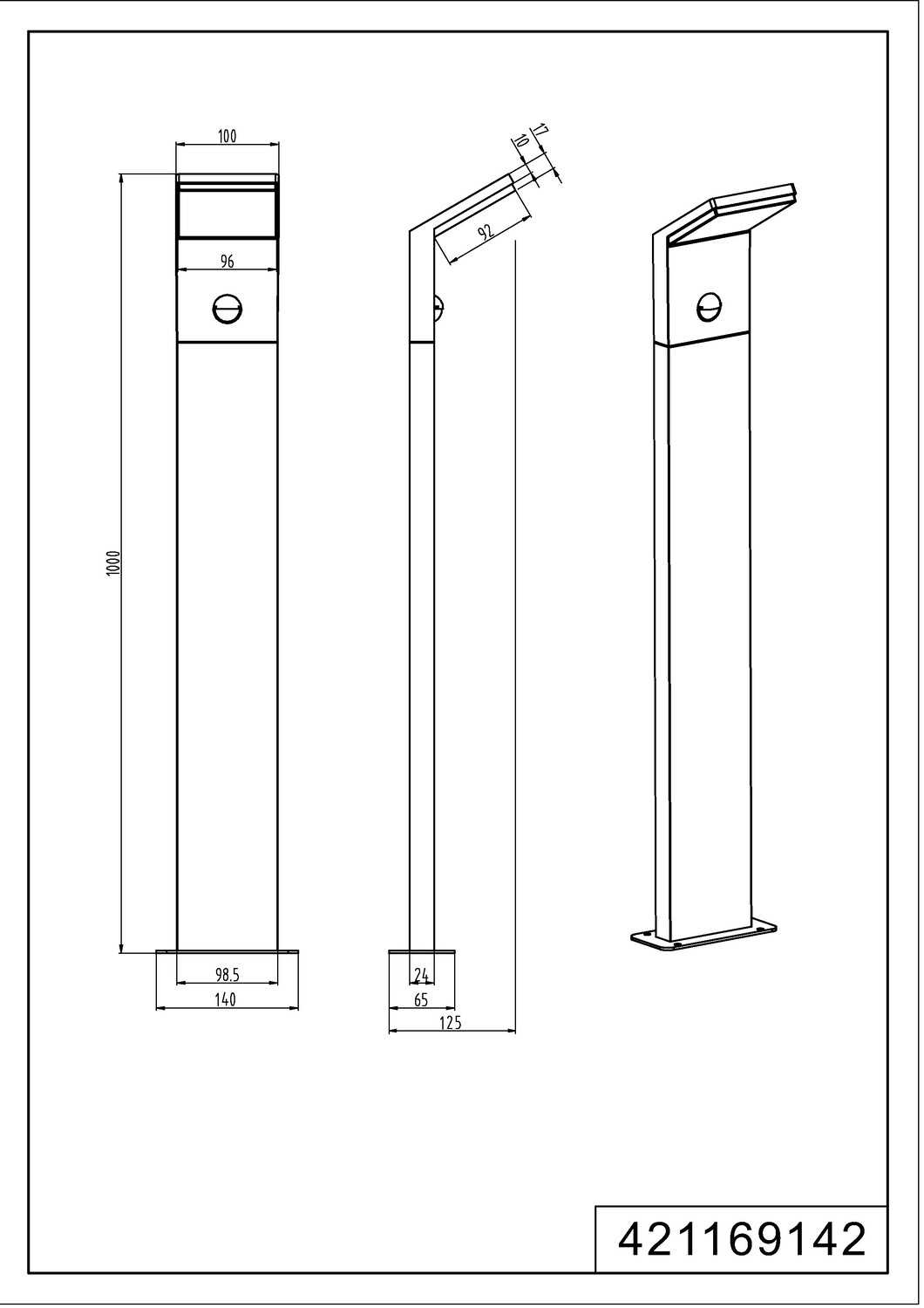 3.000°K (Chaud) 2700=chaud • 3000=chaud neutre • 4000=neutre • 6000=froid | | Variation | Non Compatible | | Alimentation / Normes | 220V/Cl1/IP54 | | Dimensions | 100* 1000* 125 mm | | Matière(s) Principale(s) | Fonte aluminium | | Couleur/Finition | Anthracite | | Position / Fixation | A fixer au sol | | Utilisation | En Extérieur | | Accessoire(s) | Détecteur de mouvement intégré | | Garantie | 2+3 ans
