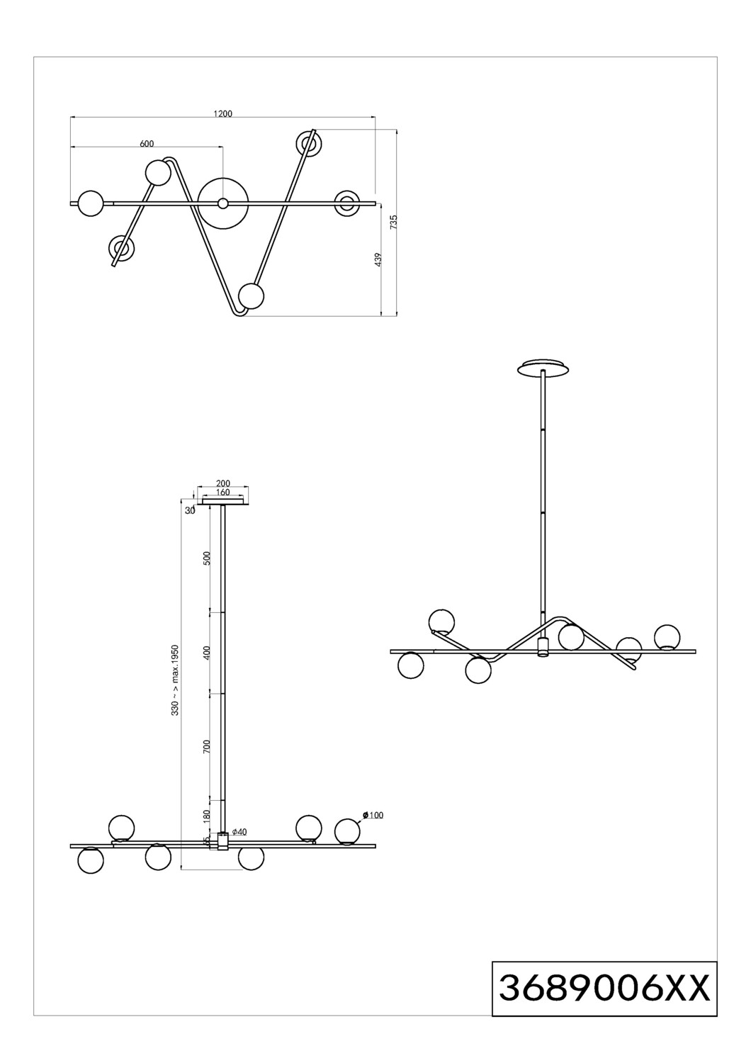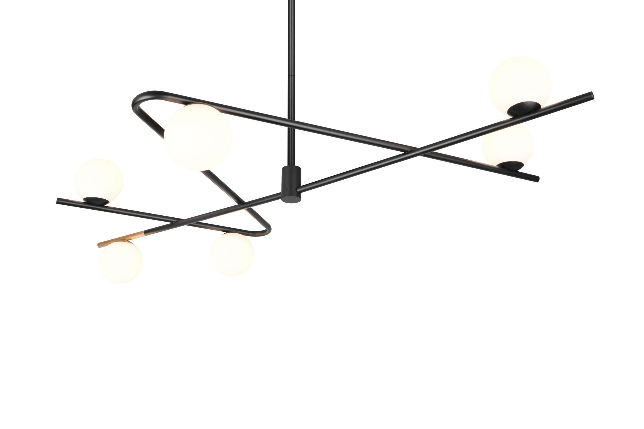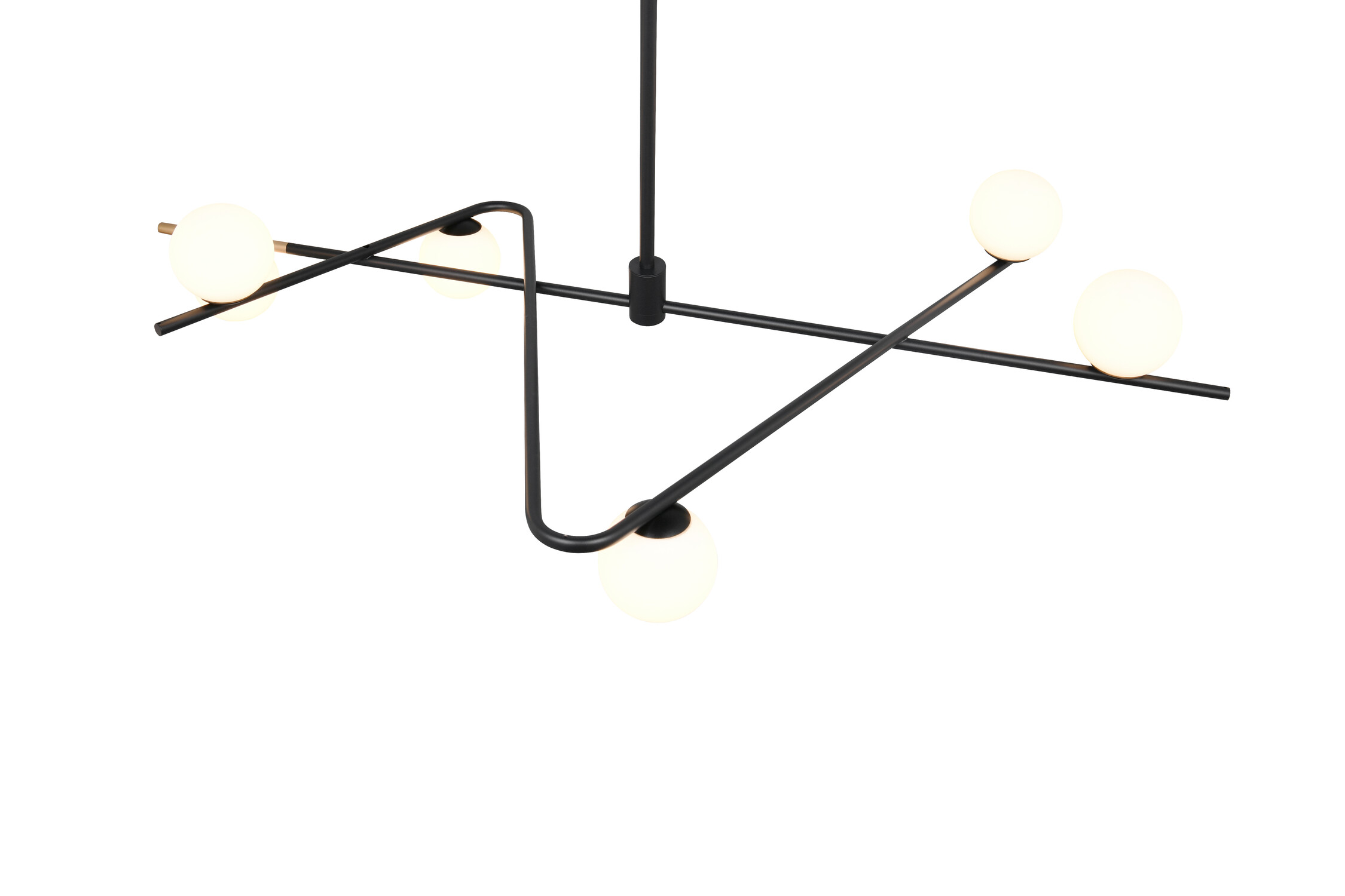 FLAMING : Design rond et élégant, combinant le Nickel Mat ou le Noir/Or avec une verrerie opale. | Type d'ampoule | Led G9 (non inclus(e)) | | Puissance | max 6*10W | | Variation | Compatible | | Alimentation / Normes | 220V/Cl2 | | Dimensions | 1200* 775* max1950 mm | | Matière(s) Principale(s) | Métal & verre | | Couleur/Finition | Noir/doré et blanc | | Position / Fixation | A fixer au plafond | | Utilisation | En intérieur | | Accessoire(s) | | | Garantie | 2 ans |