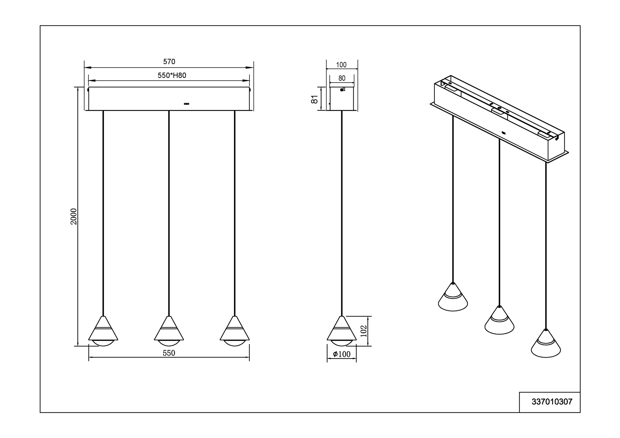 2700K=chaud • 3000K=chaud neutre • 4000K=neutre • 6000K=froid | | Variation | Non Compatible | | Alimentation / Normes | 220V/Cl2 | | Dimensions | 550* 100* 2000 mm | | Matière(s) Principale(s) | Métal | | Couleur/Finition | Nickel mat | | Position / Fixation | A fixer au plafond | | Utilisation | En intérieur | | Accessoire(s) | | | Garantie | 2+3 ans