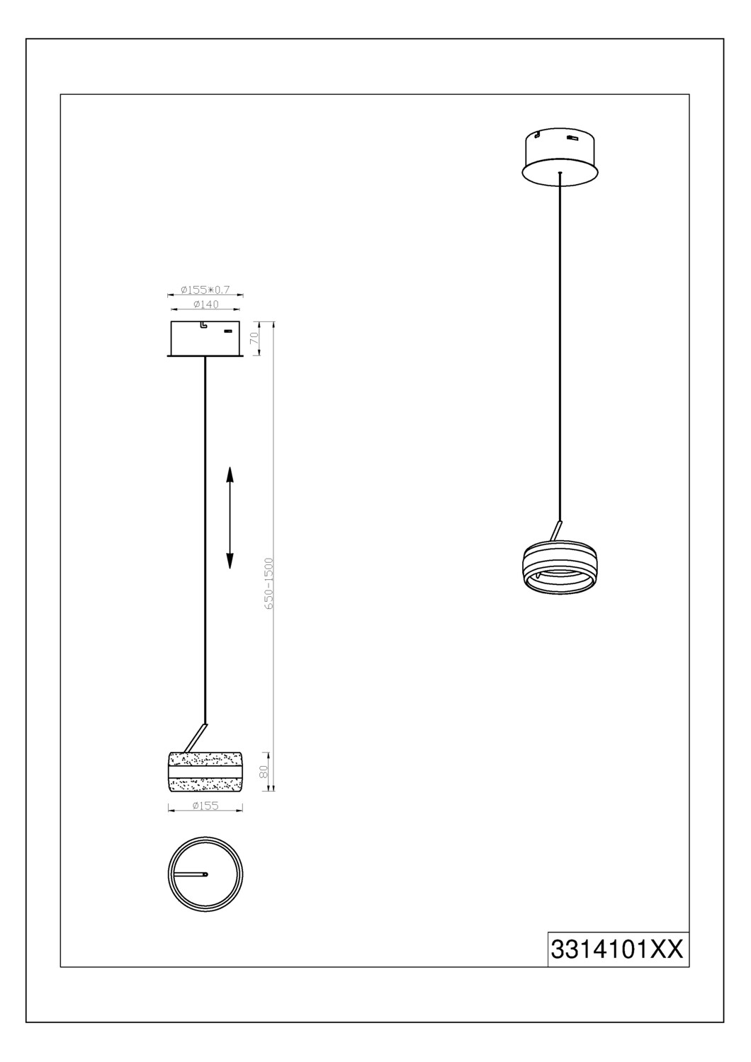 Ø155* max.1500 mm |