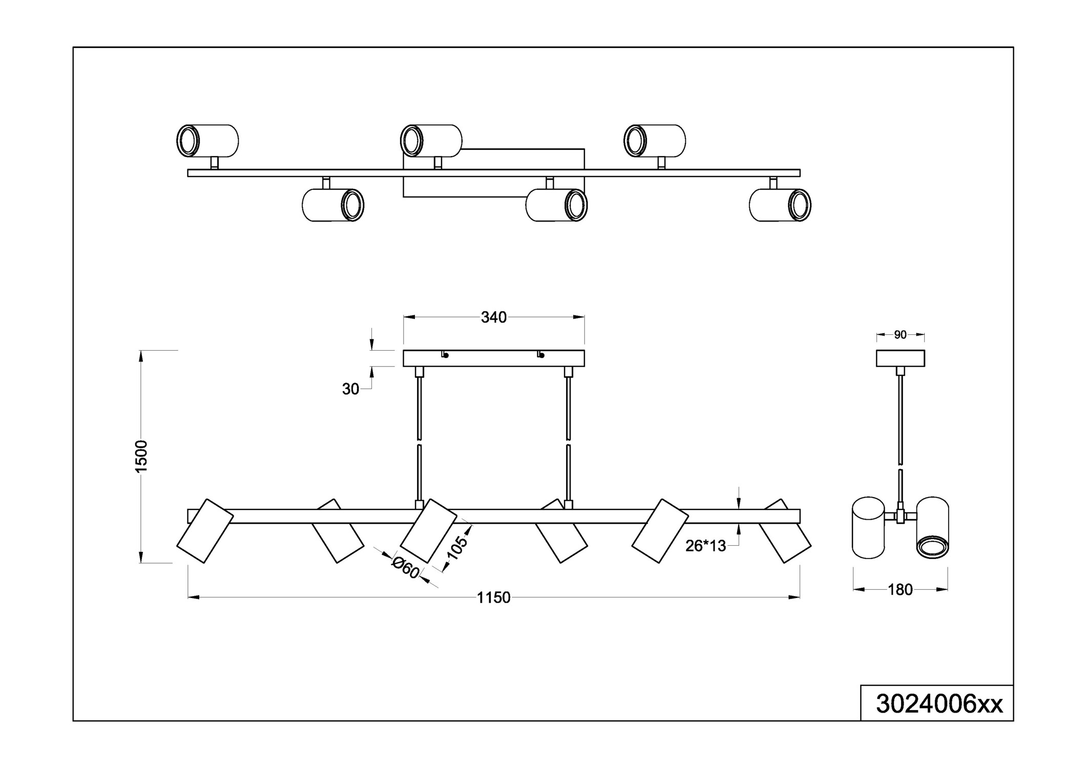 La suspension MARLEY (302400632) est le modèle XXL de la série, en Noir Mat. Ce luminaire au design discret séduit par sa qualité de fabrication et sa polyvalence.. Elle nécessite six ampoules GU10 remplaçables (non fournies, max 10W chacune). La suspension est particulièrement efficace au-dessus d'une très grande table. L'éclairage LED est fortement recommandé.