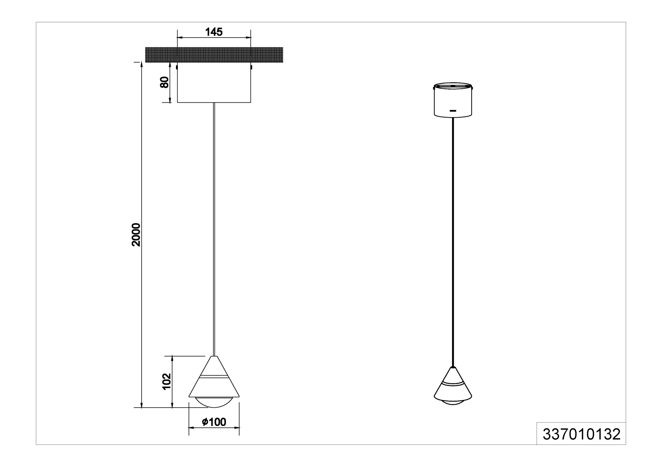 2700K=chaud • 3000K=chaud neutre • 4000K=neutre • 6000K=froid | | Variation | Non Compatible | | Alimentation / Normes | 220V/Cl2 | | Dimensions | Ø100* 2000 mm | | Matière(s) Principale(s) | Métal | | Couleur/Finition | Noir mat | | Position / Fixation | A fixer au plafond | | Utilisation | En intérieur | | Accessoire(s) | | | Garantie | 2+3 ans